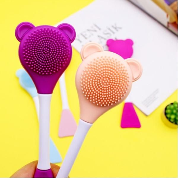 براش ماسک زنی و فیس براش طرح خرسی دارای هر دو سر سیلیکونی و دسته پلاستیکی میباشد که یک سر آن مناسب برای ماسک زدن روی پوست و سر دیگر آن جهت شستشو و ماساژ کاربرد دارد.